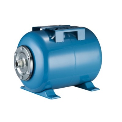 Гидроаккумулятор Zegor горизонтальный для холодной и горячей воды. Имеет корпус, изготовленный из высококачественной стали и покрытый защитной эмалью синего цвета. Пространство гидроаккумулятора разделено сменной мембраной на две камеры: водяную и воздушную. В воздушной камере находится предварительно закачанный под давлением воздух. Контакт воды с металлическими поверхностями корпуса мембранного бака невозможен, так как вся вода поступает в водяную камеру мембраны, материалом которой является износостойкий резиновый материал, не восприимчивый к воздействию бактерий и удовлетворяет всем гигиеническим и санитарным нормам для питьевой воды. Со стороны воздушной камеры в корпусе мембранного бака размещается пневмоклапан, предназначенный для регулировки давления воздуха.