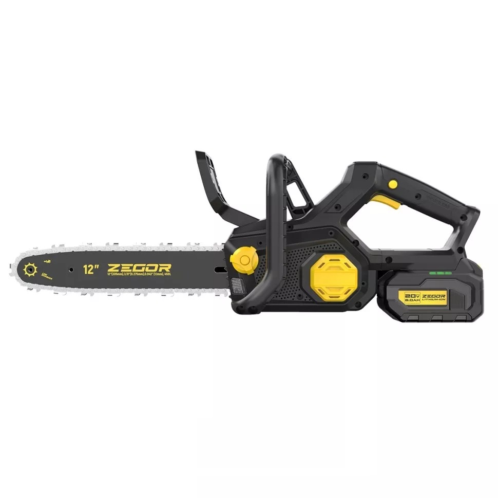 ZEGOR CSPB-21BL-12 – компактная и мощная аккумуляторная пилка с бесщеточным двигателем, идеально подходит для обрезки деревьев, заготовки дров, строительных и садовых работ. Благодаря шине длиной 305 мм, инструмент сочетает высокую производительность с удобством использования.