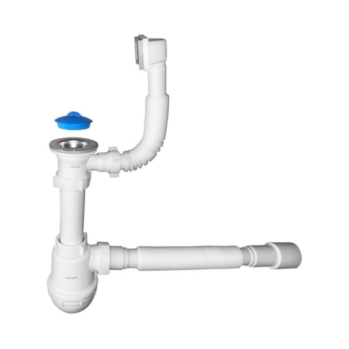 Сифон Zegor для мойки с переливом и гибкой трубой 40*40/50 DW-2231